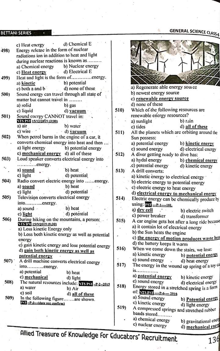 Educator Recruitment Test class 8 General Science MCQs Allied Treasure knowledge